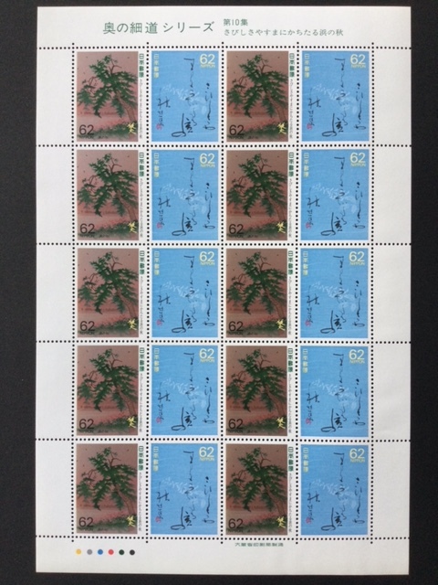 > 奥の細道シリーズ 第10集 さびしさや すまにかちたる 浜の秋 1シート (20面) 切手 未使用 1989年