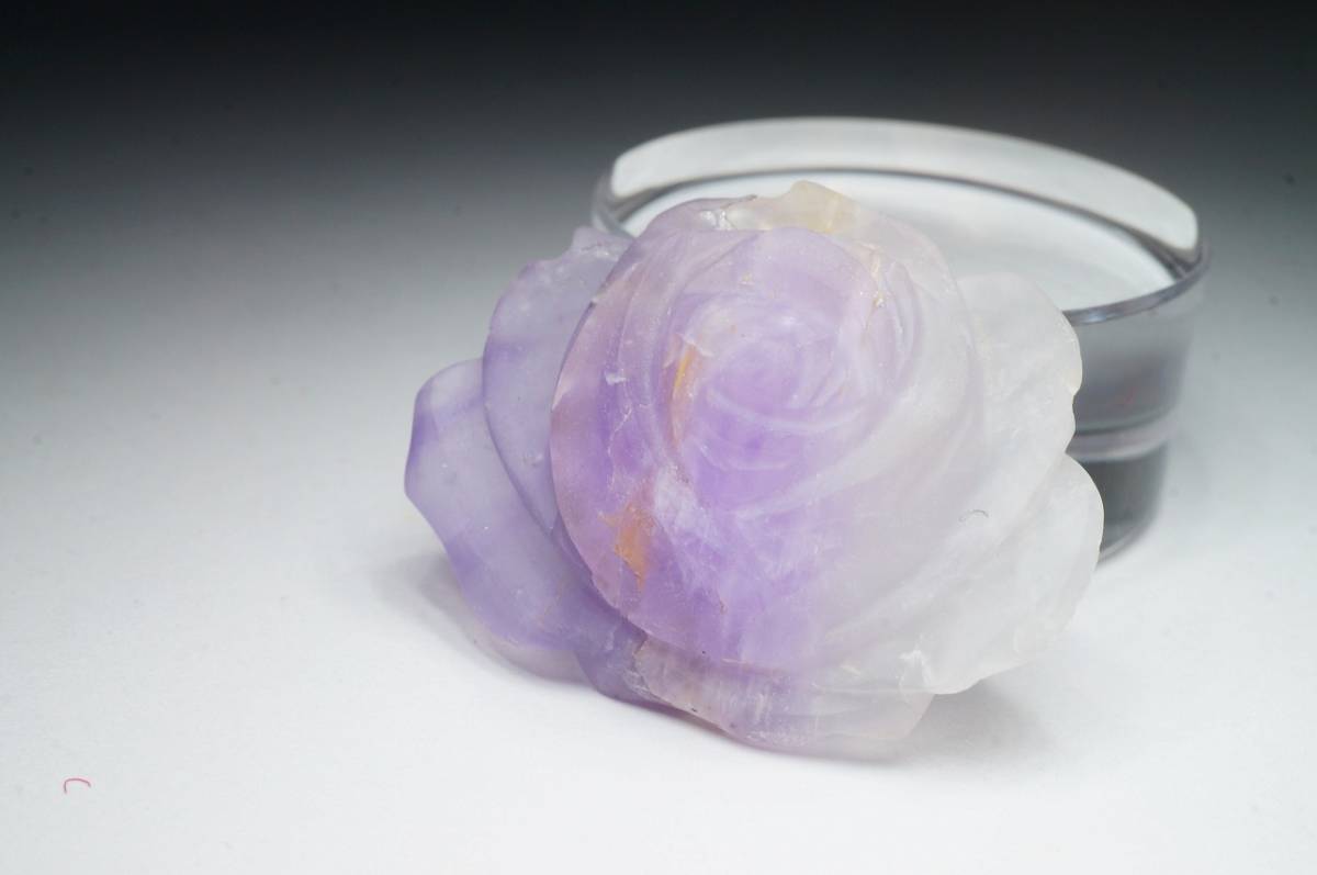 - 希少!35年前の原石を加工彫刻!天然アメジスト彫刻ルース【薔薇】彫刻研磨高透明度!甲府で彫刻研磨29.6ct