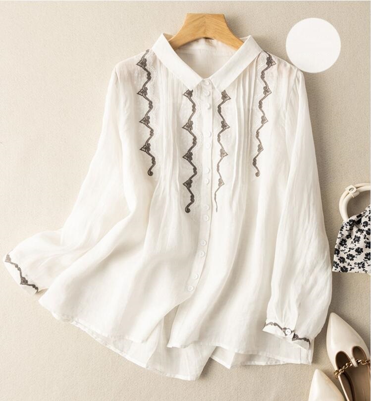 - 秋新品*シャツブラウス トップス レディース 綿麻 体型カバー ゆったり カジュアル おしゃれ かわいい 大きいサイズ チュニック * 4色選ぶ