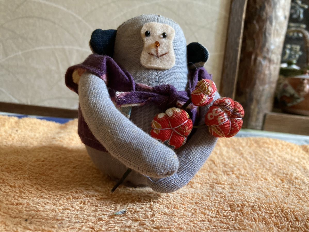 - アンティーク?骨董品?縮緬 ?ちりめん ?古布 ?猿?猿の置物?です。