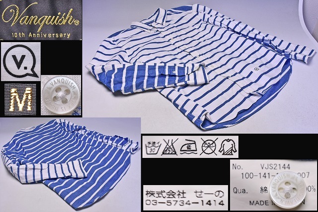 > VANQUISH ★ ヴァンキッシュ ★ ボタンダウンシャツ ★ M ★ 10周年記念タグ ★ VJS2144 ★ ストライプ ★ 綿100% ★ 日本製 ★ 中古品 ★
