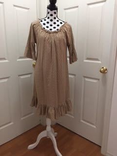 - ハンドメイド ベージュ 茶 系 刺しゅう コットン ワンピース M ~ L フリー レトロ