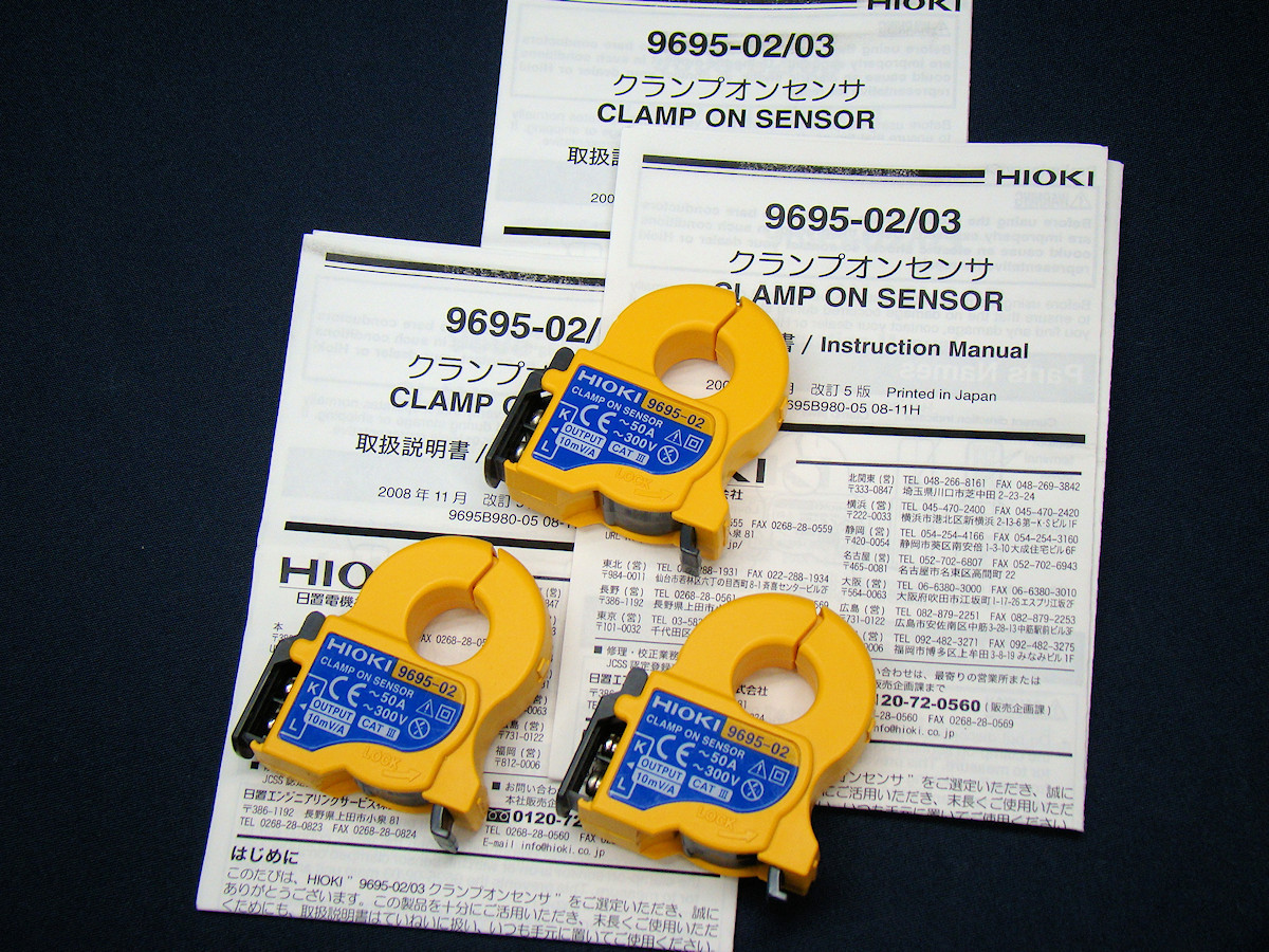- HIOKI 日置 9695-02 クランプオンセンサ 電流センサ 50A 中古 3個セット