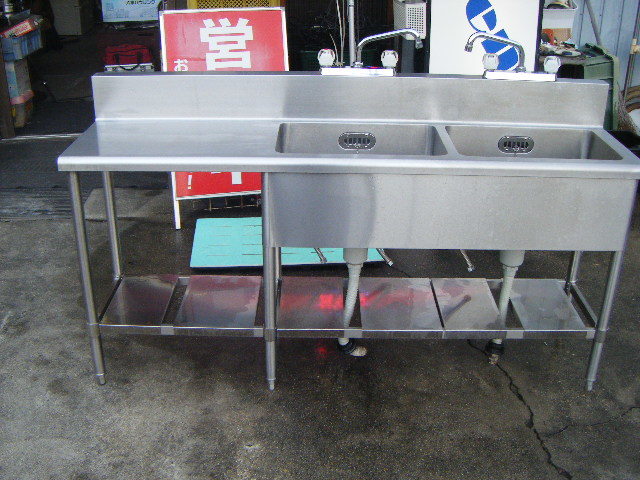 > 2槽シンク・左台付き・バックガード 1700×450×940/980(mm) 流し台 厨房 店舗 2槽+作業台