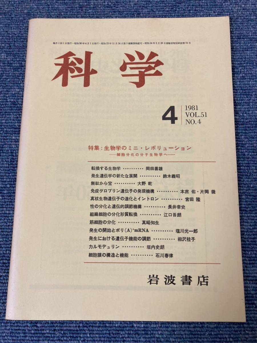 - 科学 1981 Vol.51 No.4 岩波書店 特集:生物学のミニ・レボリューション 細胞分化の分子生物学へ