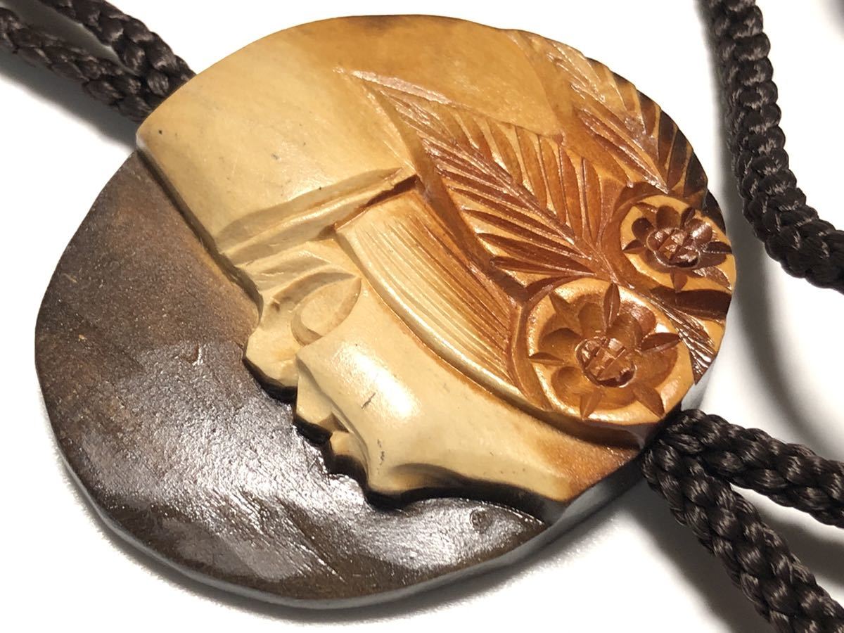 - アイヌ民族 木製 21.5g 人物細工 ループタイS