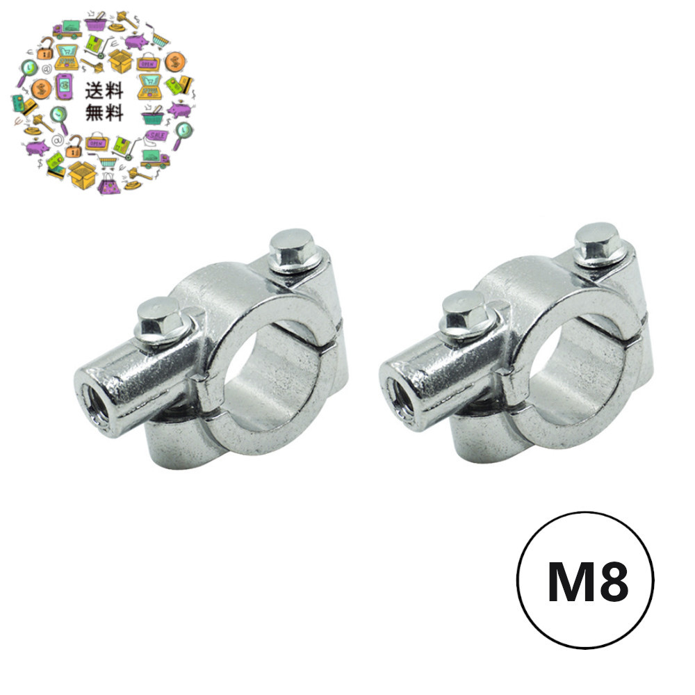 - 【M8 シルバー】ミラークランプ 2個セット 22.2mm ハンドル