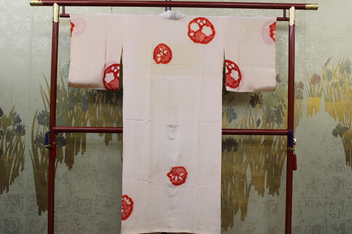 > きもの今昔6111 長襦袢 バチ衿正絹裏付き袷仕立 正絹精華織手絞り 身丈131cm