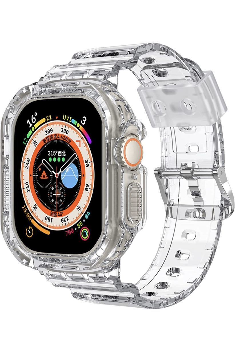 - Apple Watch Ultra 49mm バンド コンパチブル アップルウォッチ 49mm用保護ケース 一体型ベルト クリスタル TPU 透明 耐衝撃 男女兼用