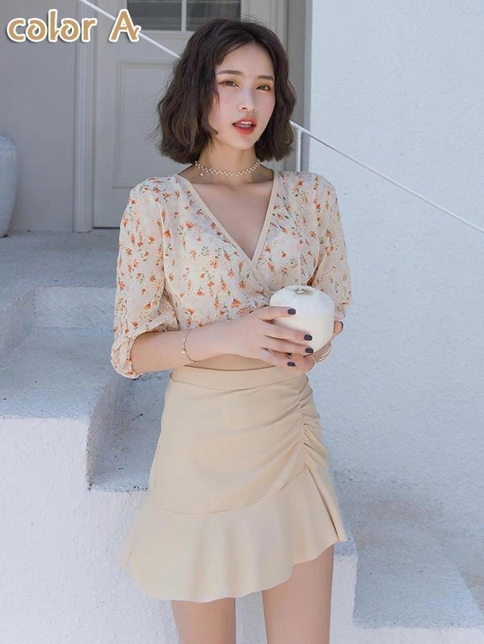 - ワンピース水着 レディース 体型カバー水着 オールインワン ママ水着 ミセス 20代 30代 40代 お腹 お尻 太もも カバーアップ ☆COLOR A