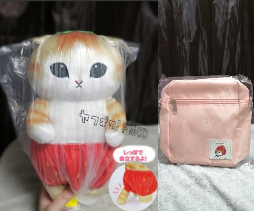 - mofusand フルーツにゃん BIGぬいぐるみ 上手に立てるよ、ミニショルダーバッグ 猫 モフサンド