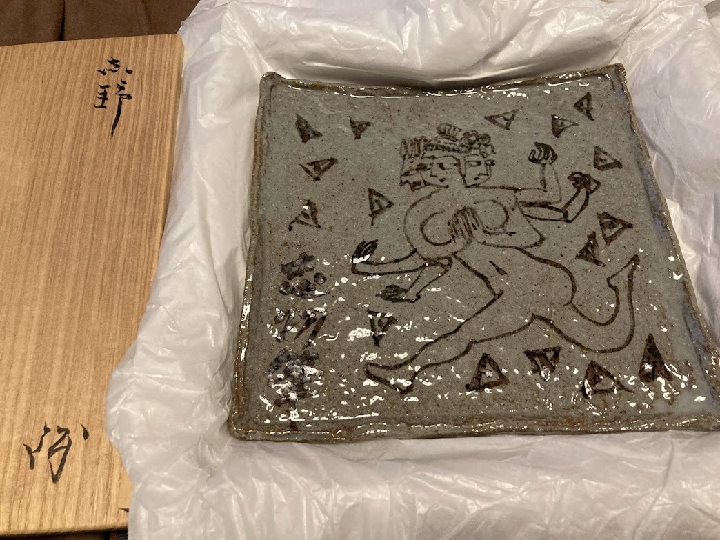- 本物保証 北大路魯山人 鼠志野 四方平鉢 皿 絵付 棟方志功 3ヶ月以内 本物返品OK