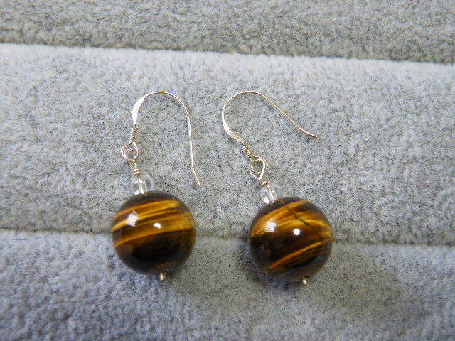 - 95014. キャッツアイタイガーアイ カラーストン ビーズ シルバー925 ピアス 未使用