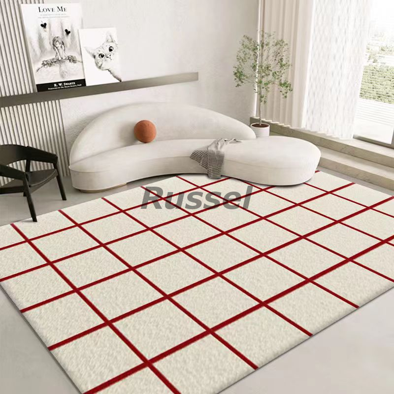 - カーペット オールシーズン ベルベット調 生地 チェック柄 フロアマット おしゃれ かわいい インテリア ショートパイル 300x200 洗える