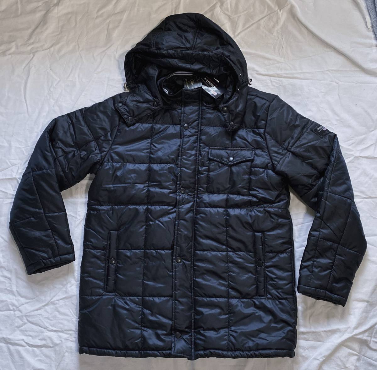 - ハーフコートジャンバー Mサイズ フード付き 千鳥濃紺系 ダンロップDUNLOP ドビー中綿 税込み10.890円品■■未使用