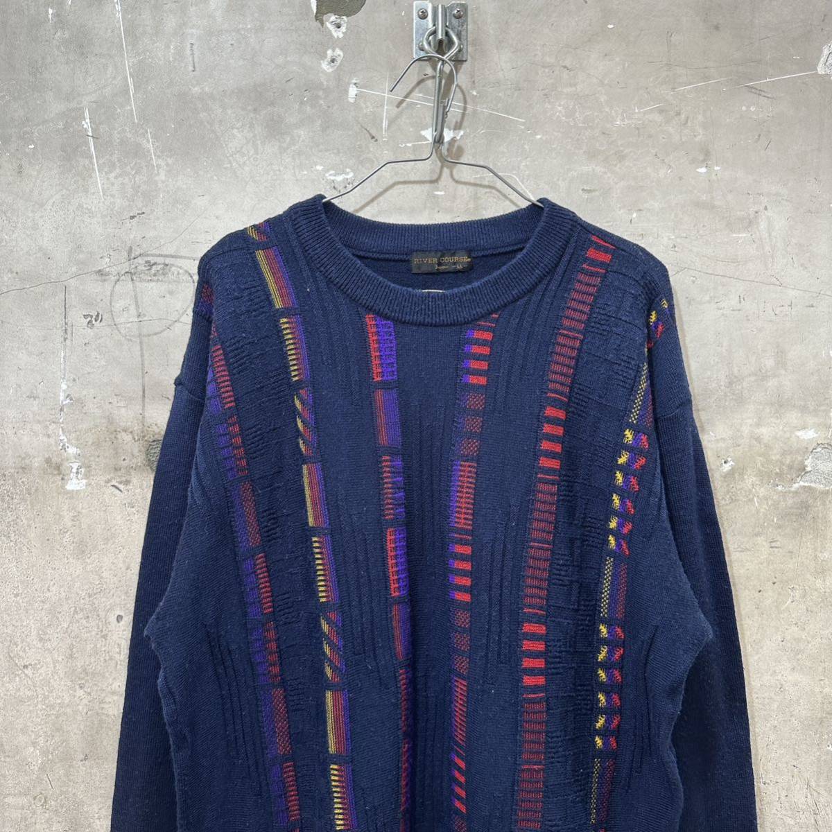 - 古着 3Dニット セーター RIVER COURSE ネイビー