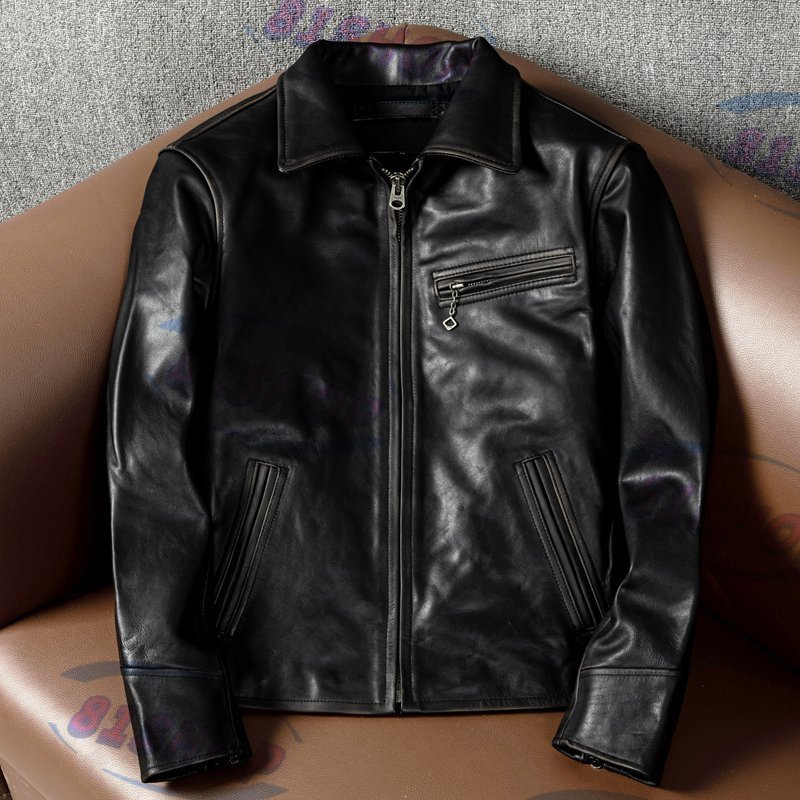 - 「81SHOP」茶芯 レザージャケット 馬革 ライダース ホースハイド バイクジャケット 本革 メンズファッション 革ジャン 防風