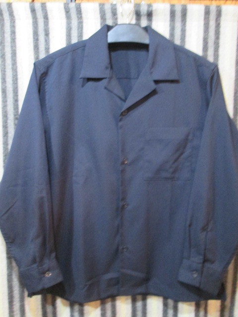 - 古着 ロカビリーシャツ(Mサイズ)オープンシャツ 開襟シャツ 紺色
