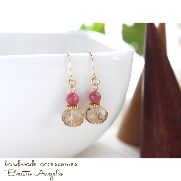 > ◆◆+angelo+ボタンカットビーズとロードナイトのピアス(p-039)ライトゴールド G 香水瓶 ピンク 天然石 ベージュ