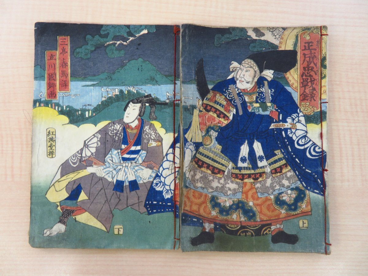> 三亭春馬作 歌川国郷画『正成忠戦録』(全2冊揃)安政5年 紅英堂刊 江戸時代和本 表紙彩色木版画(二枚続)浮世絵 草双紙 絵草紙 楠木正成