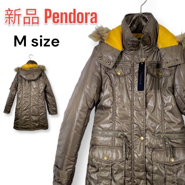 - 【新品】PENDORA レディース アウター 中綿ロングコート Aライン 茶系 フード取り外し可