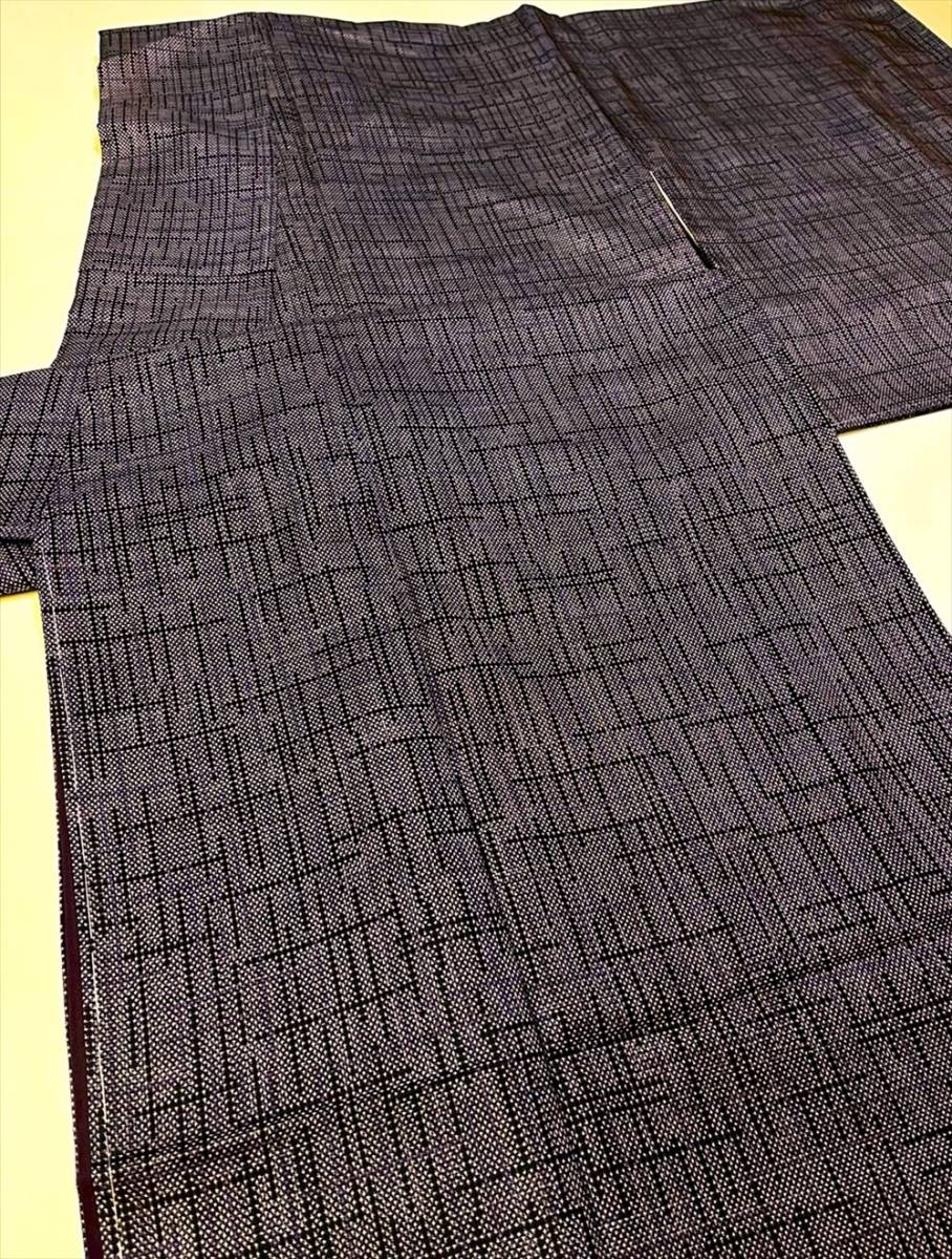 - 花とら●リサイクル着物 大島紬 未着用 しつけ糸付き 超美品 紫 リメイク 素材 231222