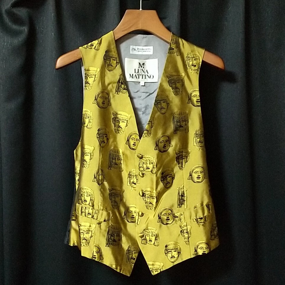 > LUNA MATTINO ルナマティーノ ベスト 総柄 M 日本製 ゴールド シルク ツタンカーメン FICCE Jean Paul GAULTIER VERSACE DOLCE&GABBANA