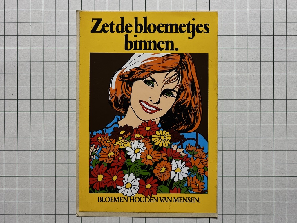 - 室内のゼラニウム 花は人を愛する BLOEMEN HOUDEN VANMENSEN オランダ 古いステッカー ビンテージ 海外 +Ad