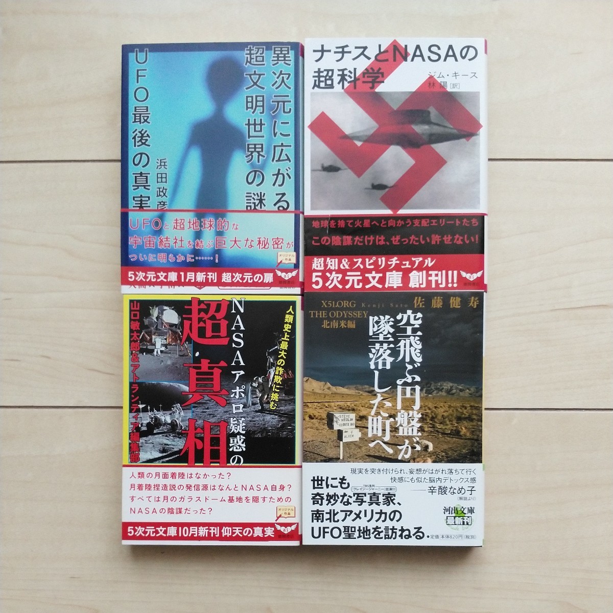 - ■『空飛ぶ円盤が墜落した町へ/NazisとNasaの超科学/NASAアポロ疑惑の超真相/UFO最後の真実異次元に広がる超文明世界の謎』文庫4冊一括。