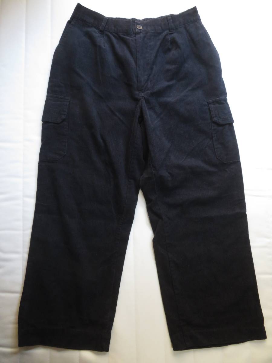 > VELILLA コーデュロイ ワイド カーゴ パンツ コットン素材(ALGODON) サイズL ネイビー 紺 ウエスト~ゴム ワーク 送料無料