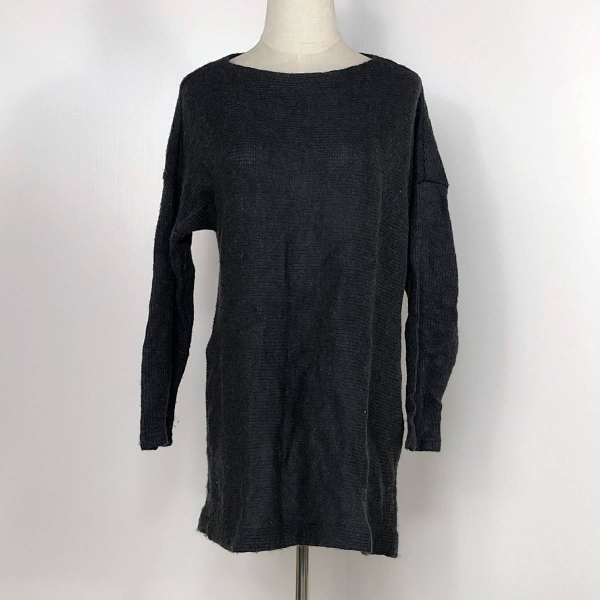 - Y0370 UNIQLO ユニクロ レディース トップス ニット チュニック セーター 長袖 Lサイズ グレー 灰 ネイビー 紺 無地 毛素材含 カジュアル