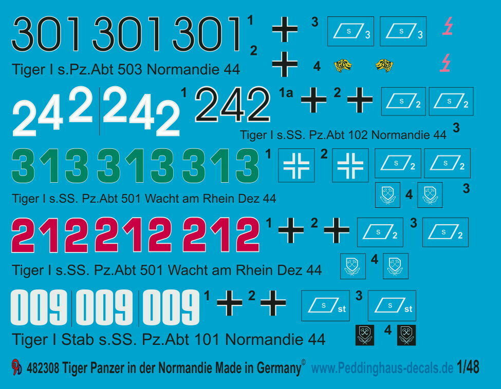 > ●デカール1/48 ティーガー重戦車(5輌)ノルマンディ ドイツ製48-2308【高品質ドイツ製デカール!即決・送料無料! 匿名発送】