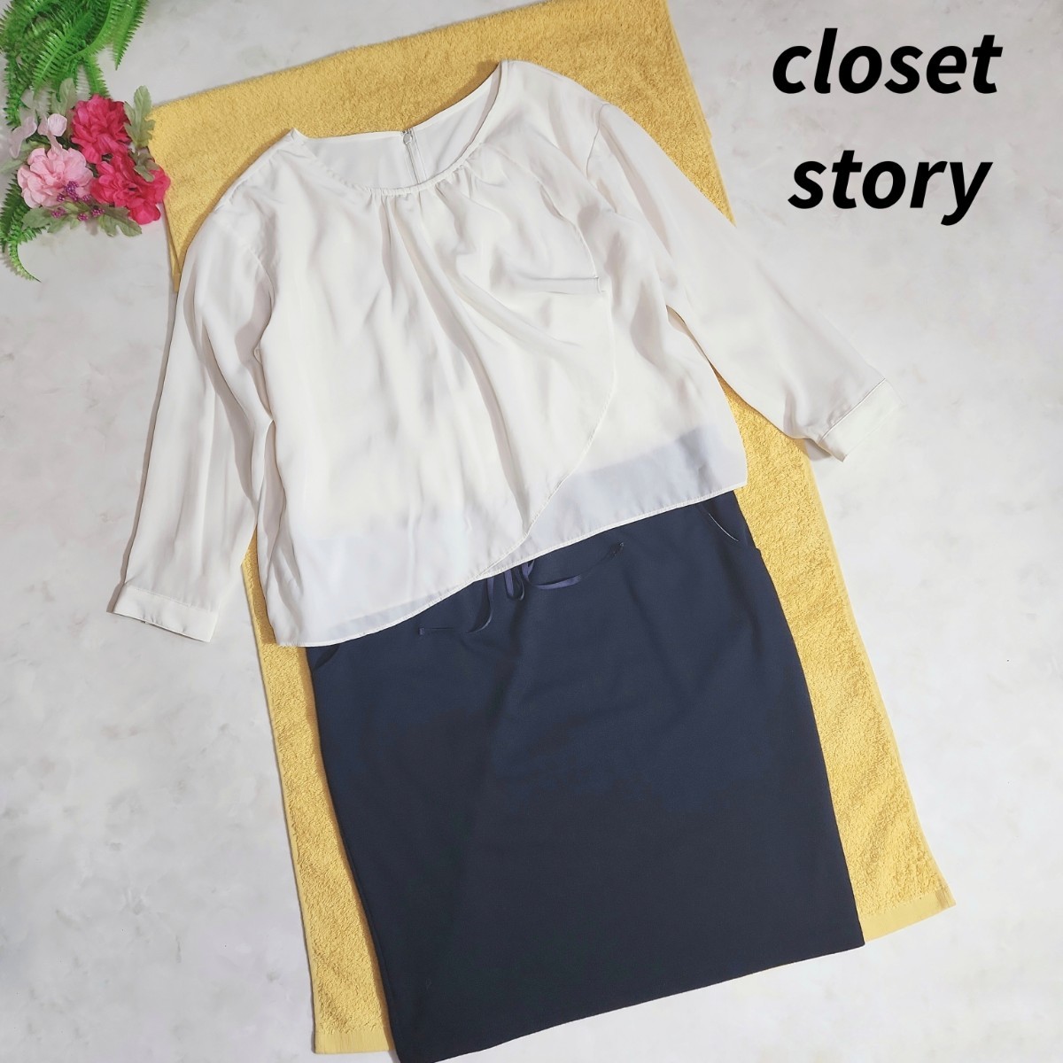 > ユナイテッドアローズ CLOSET STORY ドッキング チュニック風ワンピース オフホワイト&ネイビー サイズ表記なし 82652