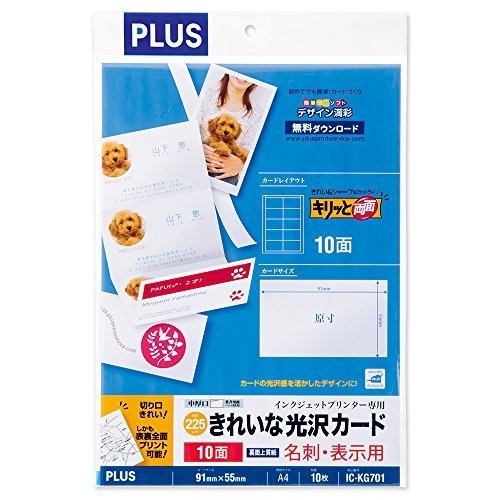 - プラス 名刺用紙 きれいな光沢カード キリッと両面 A410面10枚 46-673 IC-KG701