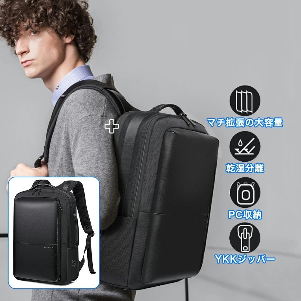 - リュック メンズ ビジネスリュック 3WAY 防水 PCリュック 大容量 バックパック マチ拡張 15.6インチPC USBポート付き 多機能 通勤 出張
