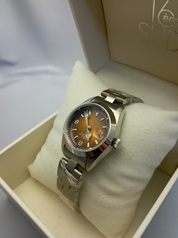 - 基本送料無料ーメタルベルトレディースサイズブラウン文字盤時計