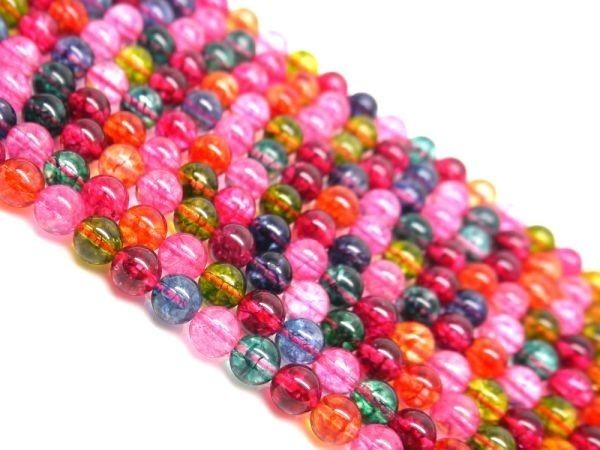 - [EasternStar] 海外発送 ミックス 蛍水晶 ホタル クォーツ 西瓜水晶 Quartz 玉サイズ10mm 1連売り 長さ約40cm