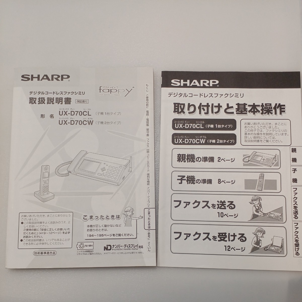 - zaa-540♪シャープデジタルコードレスファクシミリ取扱説明書 UX-D70CL/UX-D70CW