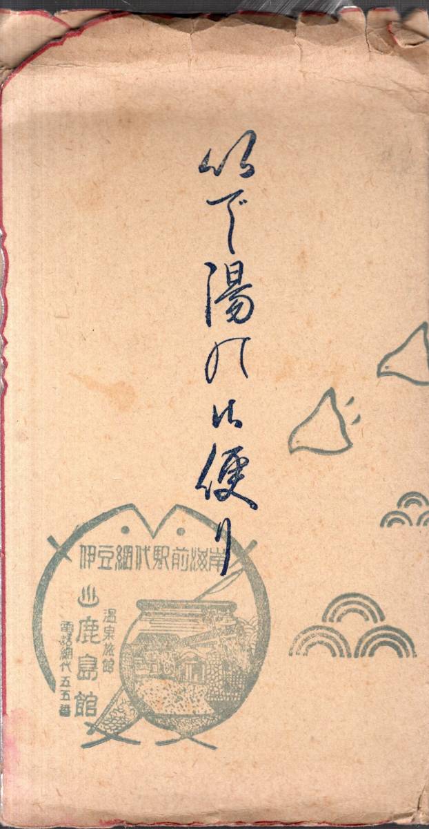 - 絵葉書 いで湯の御便り 伊豆網代駅前開眼温泉旅館鹿島館 建物全景・庭園の一部・網代の海岸・大浴場・客室・眺望着物女性等絵はがき8枚