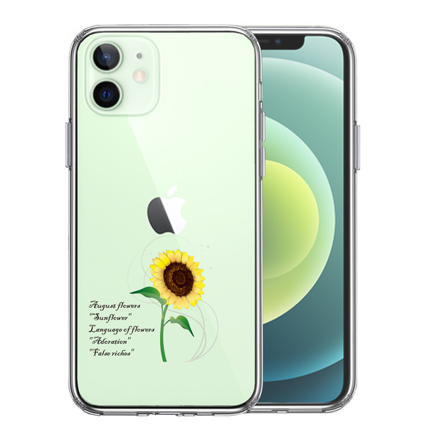 - iPhone12 ケース クリア 一輪花 8月 ひまわり 向日葵 スマホケース 側面ソフト 背面ハード ハイブリッド