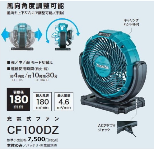 - マキタ 充電式 ファン CF100DZ 10.8Vスライド 本体のみ 扇風機 新品