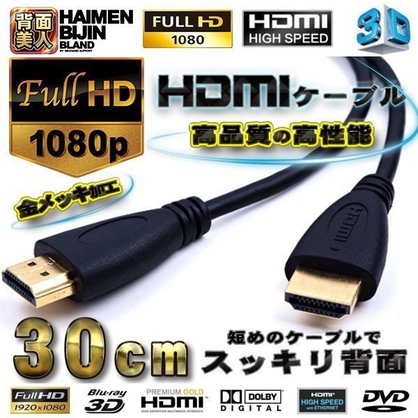 - 4K対応 HDMIケーブル 0.3m 3D対応 フルハイビジョン 背面美人-【ver2.0】