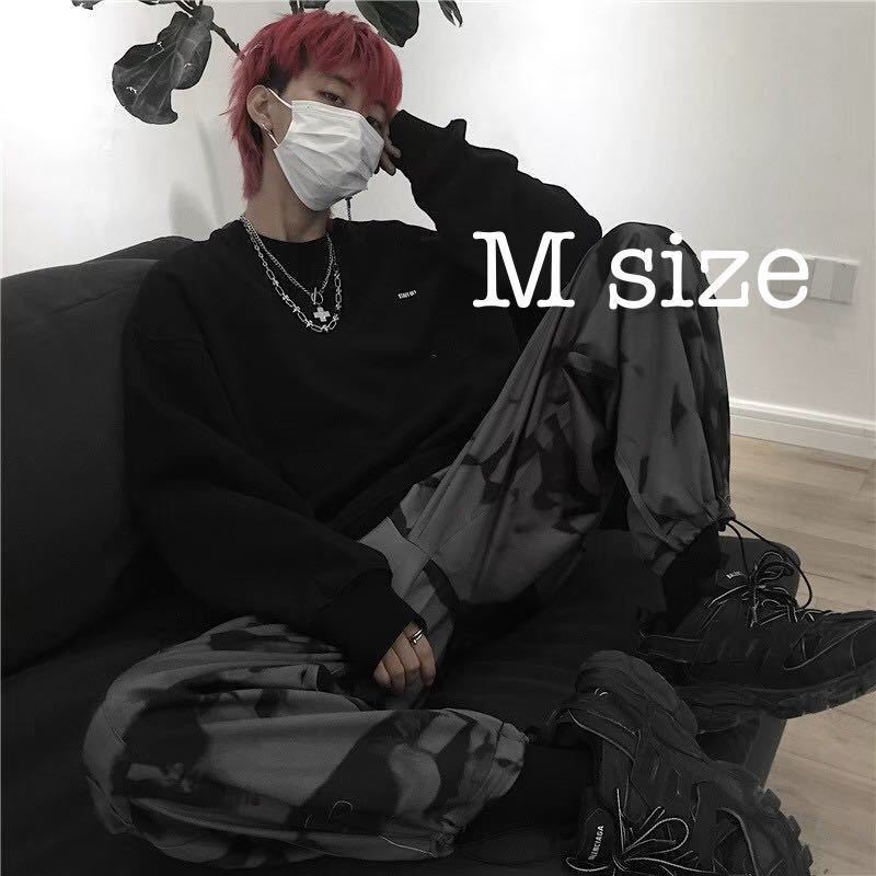 - カーゴパンツ ワイドパンツ タイダイ柄 ワークパンツ ユニセックス ユニセックス 黒グレー M