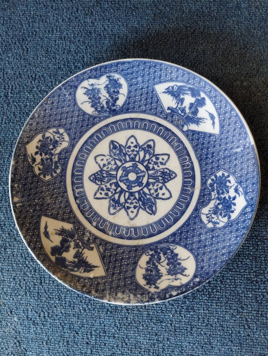 - 骨董品 富士山 絵 飾り皿 プレート 大皿 インテリア 吹きいげ皿 染付