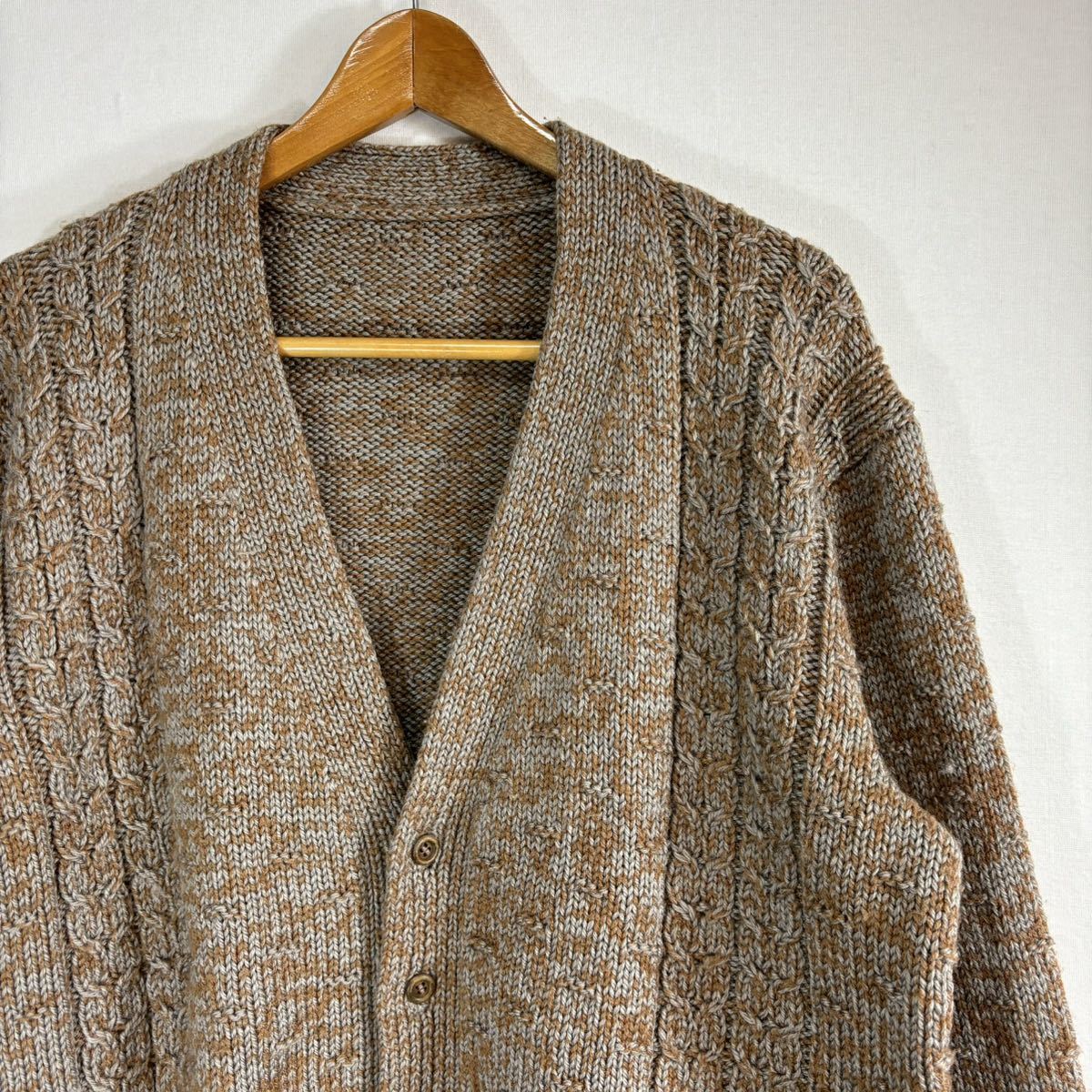 > ビンテージ 90s【ケーブル編み】ブラウン グレー ミックスカラー カーディガン 古着 グランジ アランニット フィッシャーマン ニット Y2K