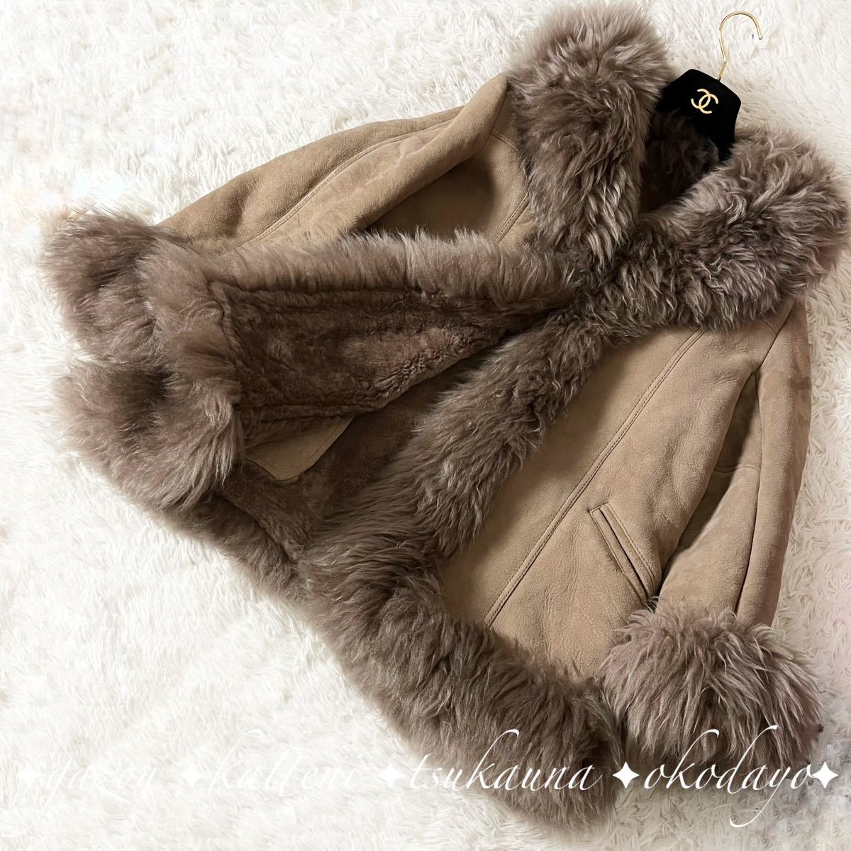> ヴィンテージ ビンテージ 古着 ムートンコート ムートンジャケット ファー フード 羊革 羊皮 リアルレザー ブラウンベージュ フリーサイズ