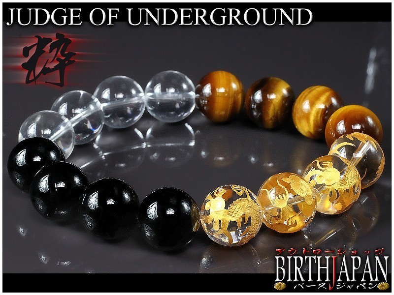 > 太め14mm 金龍水晶&オニキス&虎目石 タイガーアイ数珠ブレスレット ホストヤクザ 悪羅悪羅系 オラオラ系 ヤンキー 派手