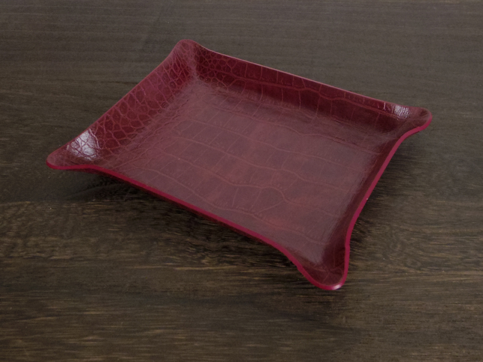 - 送料込み★お手入れいらずリサイクルレザーコイントレイ カルトン マネートレー アクセサリー リモコン 腕時計 鍵★クロコ型押ボルドー
