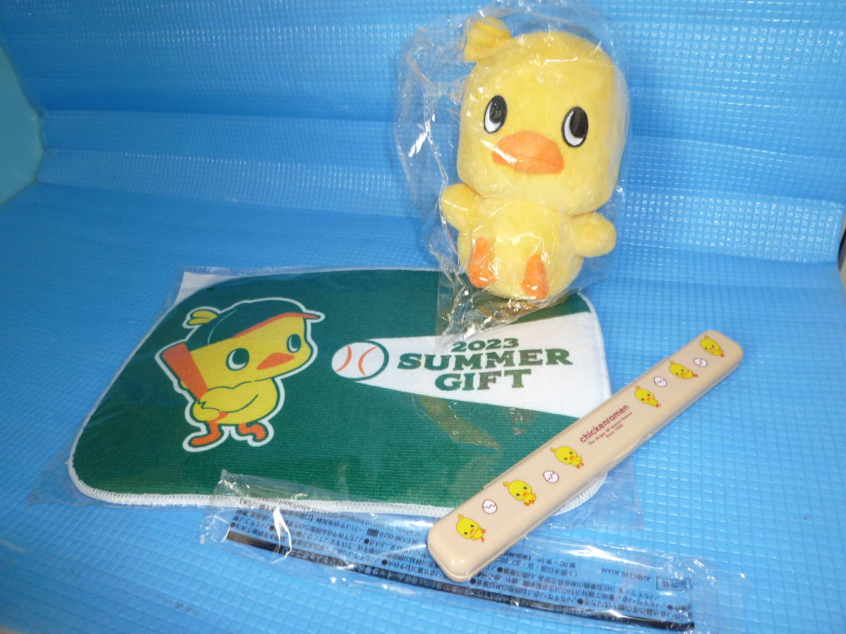 - A★未使用・非売品★日清チキンラーメン ひよこちゃん ぬいぐるみと水切りマットと箸&箸ケースセット