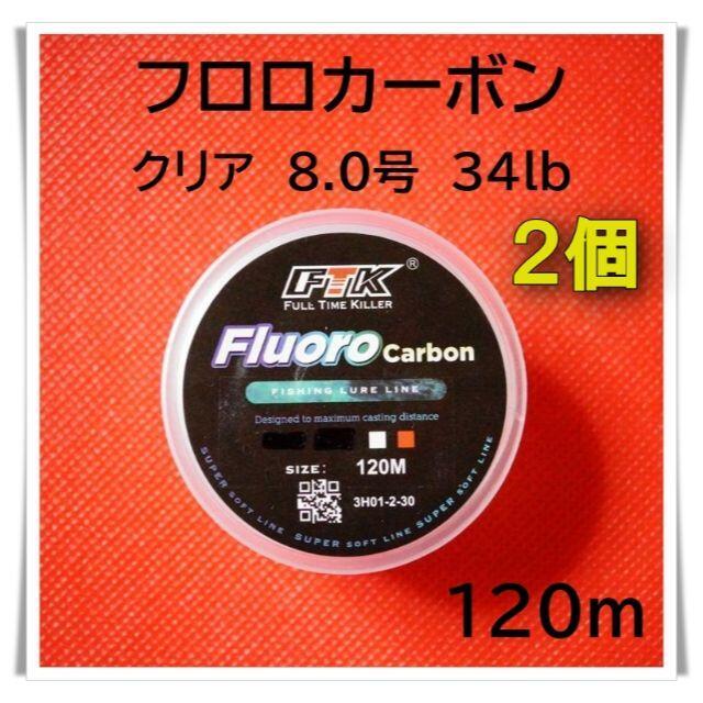 - 2個セット フロロカーボン 8.0号 34lb 120m (クリア)釣り糸 ラ
